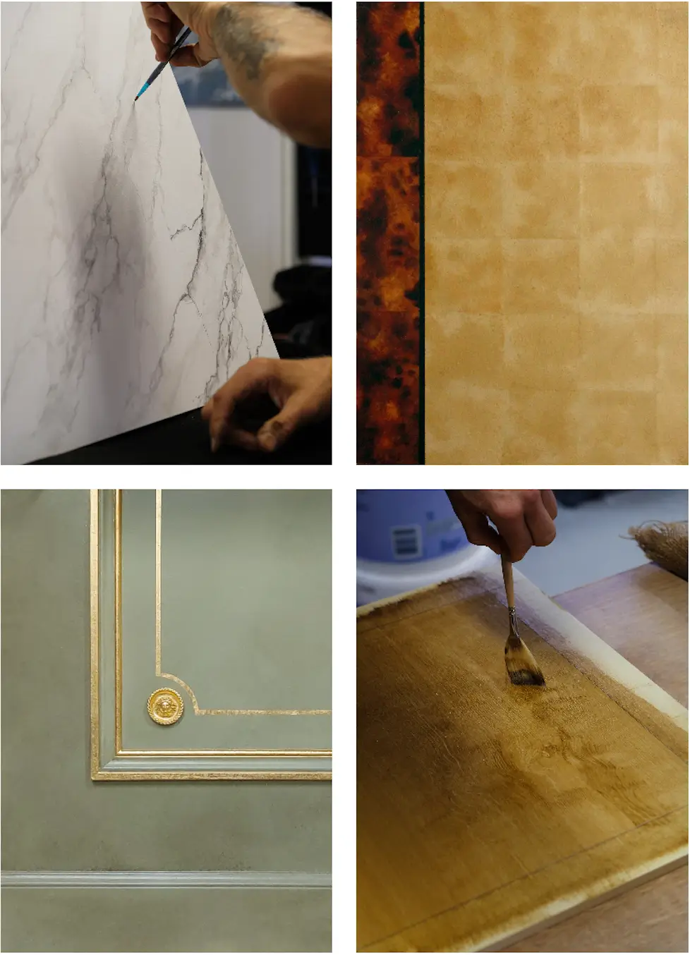 La peinture décorative est un ensemble de techniques traditionnelles qui permettent de reproduire l'aspect de matériaux nobles. Ces techniques combinent maîtrise du geste, sens de la couleur et observation attentive des matériaux naturels pour obtenir un rendu réaliste et élégant. Parmi ces techniques on retrouve par exemple :